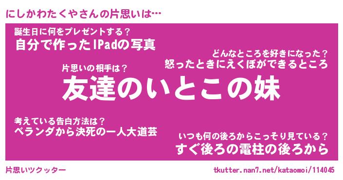 | ヘコむあだ名 | 『にしもー』『つくし』『にしっちょ』 |