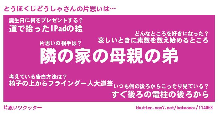 | 胡散臭い通販商品みたいなあだ名 | 『モテモテ間違いなしブレスレット…その名も「とうほくじどうしゃ」』 |