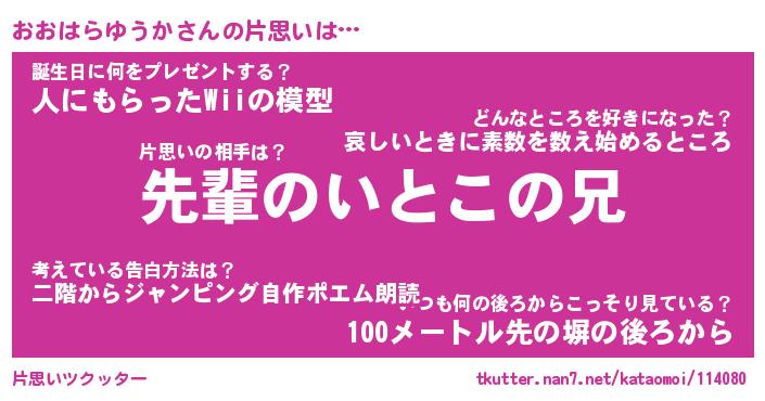 | 胡散臭い通販商品みたいなあだ名 | 『モテモテ間違いなし水晶球…その名も「おおはらゆうか」』 |