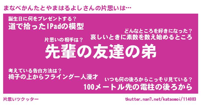| ツイッター | まなべかんたとやまはるよしさんのツイッターID『katatsumuri_nyan』 |