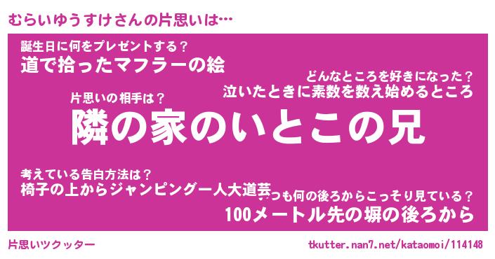 | 男性向けラノベタイトル風あだ名 | 『むらいゆうすけの憂鬱』 |
