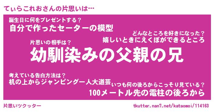 | ヘコむあだ名 | 『てぃにゅー』『つくし』『てぃお』 |