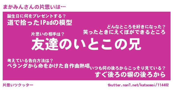 | 2回繰り返すあだ名 | 『まかまか』『ままかか』『ぬれぬれ』 |