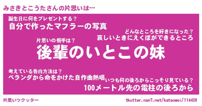 | 胡散臭い通販商品みたいなあだ名 | 『億万長者になれる水晶球…その名も「みさきとこうた」』 |