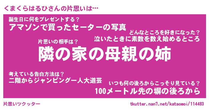| 胡散臭い通販商品みたいなあだ名 | 『モテモテ間違いなしブレスレット…その名も「くまくらはるひ」』 |