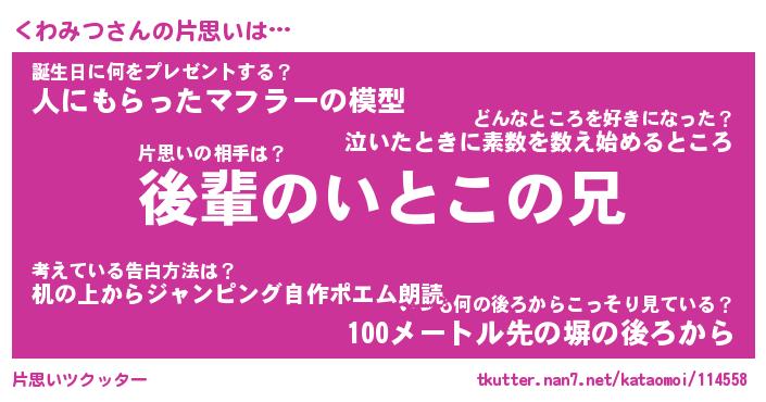 | ヒーロー風カッコイイあだ名 | 『スーパークワミツ』『天弓騎士クワ』 |