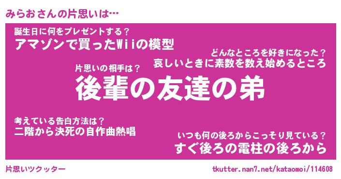 | ヘコむあだ名 | 『みらもー』『酢こんぶ』『みらお』 |