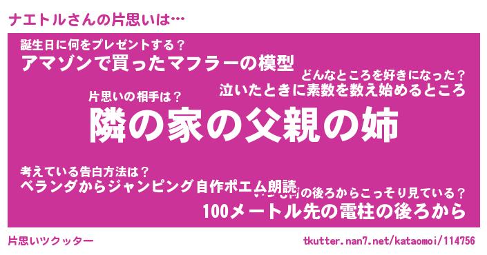 | ファンタジー風あだ名 | 『ナエフェル』『エターナルナエトルー』 |