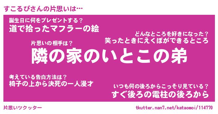 | 胡散臭い通販商品みたいなあだ名 | 『必ず成功する霊験あらたかなお札…その名も「すこるぴ」』 |