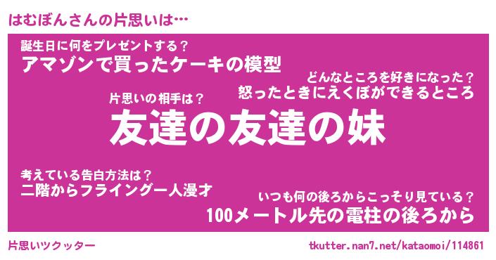 | 意味不明あだ名 | 『ペロリンはむぼん』『永久保存はむぼん』 |