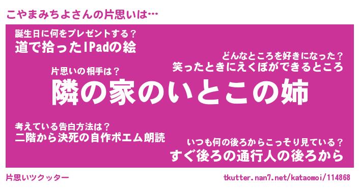 | 胡散臭い通販商品みたいなあだ名 | 『モテモテ間違いなし水晶球…その名も「こやまみちよ」』 |