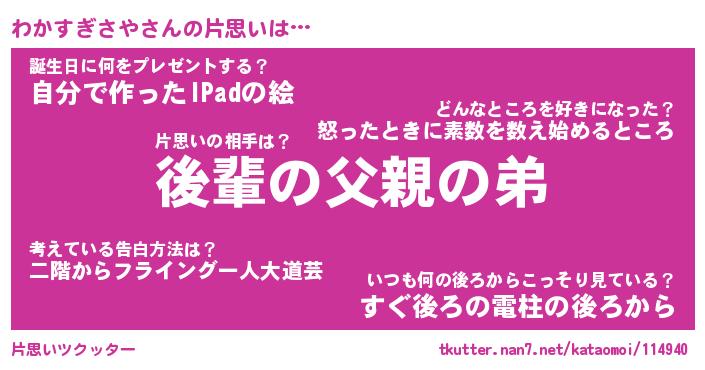 | 胡散臭い通販商品みたいなあだ名 | 『モテモテ間違いなし水晶球…その名も「わかすぎさや」』 |