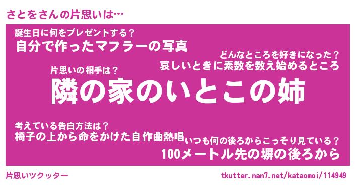 | 意味不明あだ名 | 『ペロリンさとを』『さとをフォーエバー』 |
