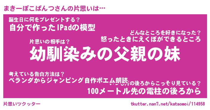 | 胡散臭い通販商品みたいなあだ名 | 『必ず成功する水晶球…その名も「まきーぽこぱんつ」』 |
