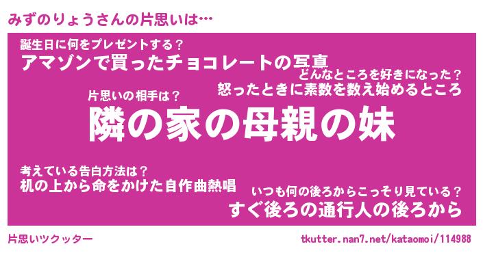 | ヘコむあだ名 | 『みずふぇ~』『なまこ酢』 |
