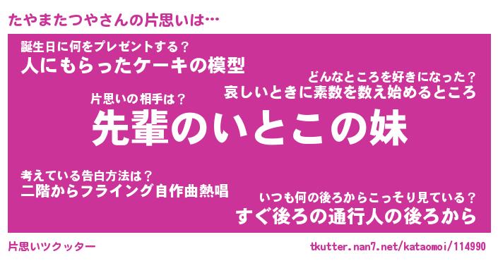 | 胡散臭い通販商品みたいなあだ名 | 『モテモテ間違いなし水晶球…その名も「たやまたつや」』 |
