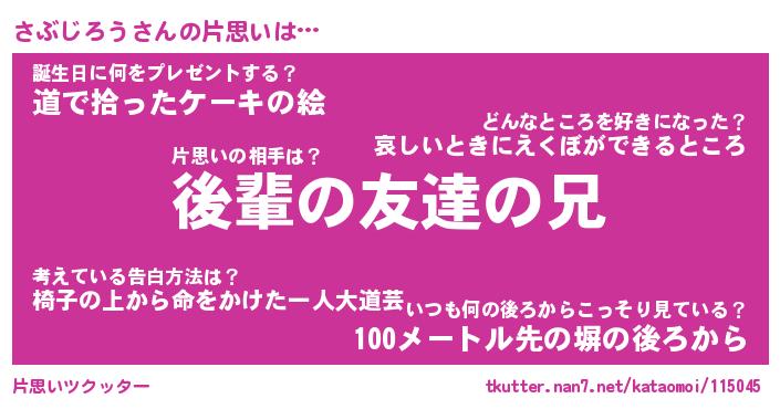 | ヘコむあだ名 | 『さぶもー』『牛乳』『さぶ太郎』 |