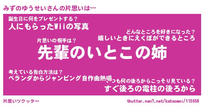 | 男性向けラノベタイトル風あだ名 | 『みずのゆうせいの憂鬱』 |