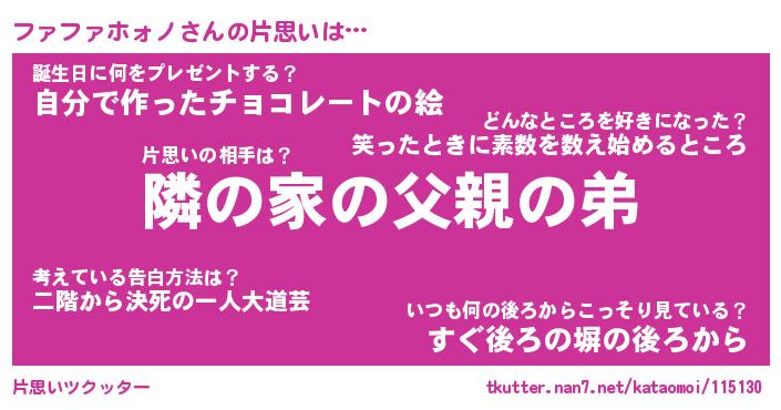 | 2回繰り返すあだ名 | 『ファファ』『フファァ』『ぬれぬれ』 |