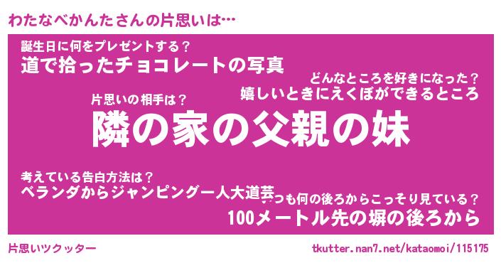| ヘコむあだ名 | 『わたにゅー』『つくし』『わたっぺ』 |