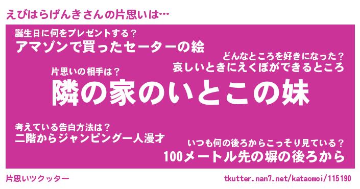 | 男性向けラノベタイトル風あだ名 | 『えびはらげんきの憂鬱』 |