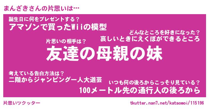 | ヘコむあだ名 | 『まんにー』『なまこ酢』『まん太郎』 |