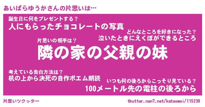 | 胡散臭い通販商品みたいなあだ名 | 『必ず成功する水晶球…その名も「あいばらゆうか」』 |