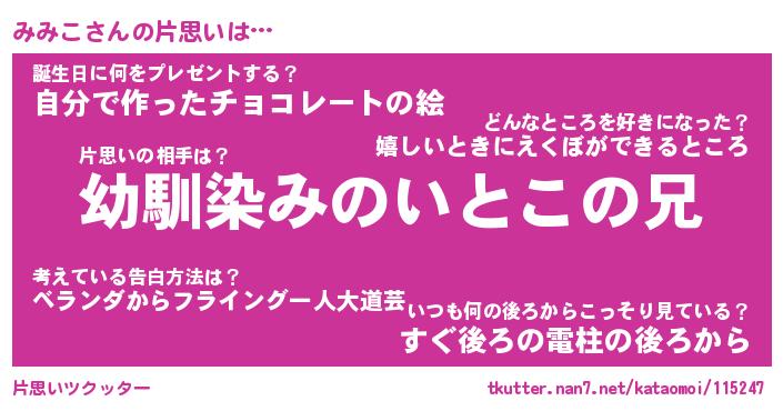 | ヘコむあだ名 | 『みみもー』『つくし』『みみ太郎』 |