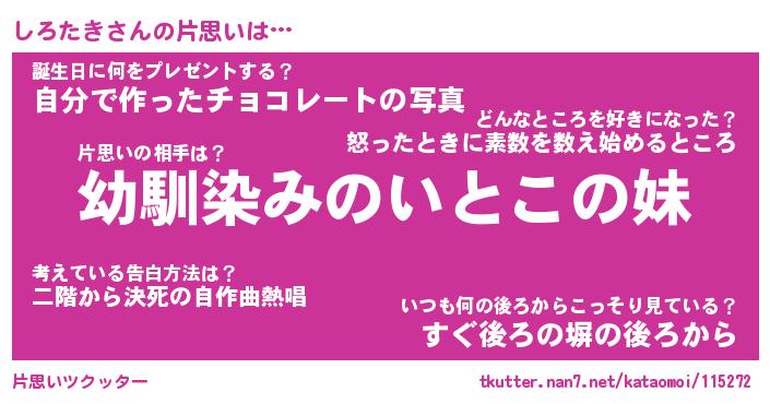 | 男性向けラノベタイトル風あだ名 | 『しろたきの憂鬱』 |