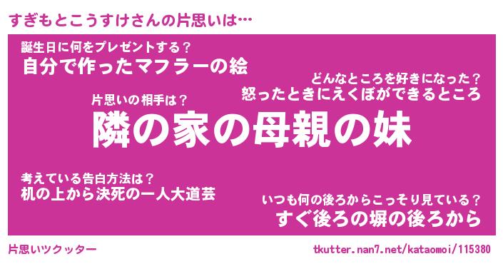 | 男性向けラノベタイトル風あだ名 | 『すぎもとこうすけの憂鬱』 |