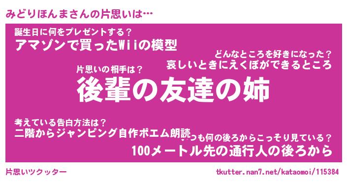| ヘコむあだ名 | 『みどっふぃ~』『なまこ酢』 |