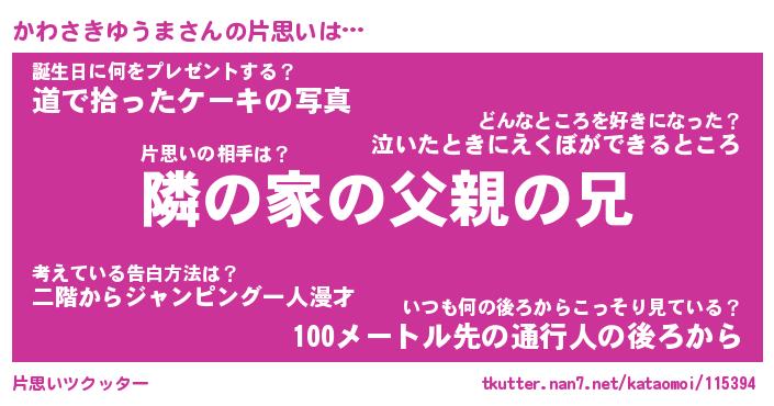 | 胡散臭い通販商品みたいなあだ名 | 『モテモテ間違いなし水晶球…その名も「かわさきゆうま」』 |