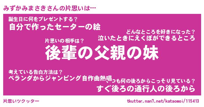 | ヘコむあだ名 | 『みずふぇ~』『つくし』 |