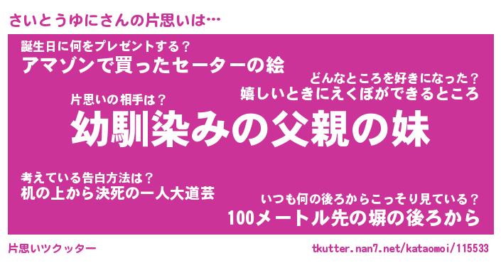 | 男性向けラノベタイトル風あだ名 | 『さいとうゆにの憂鬱』 |