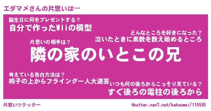 | ヘコむあだ名 | 『エダもー』『つくし』『エダを』 |