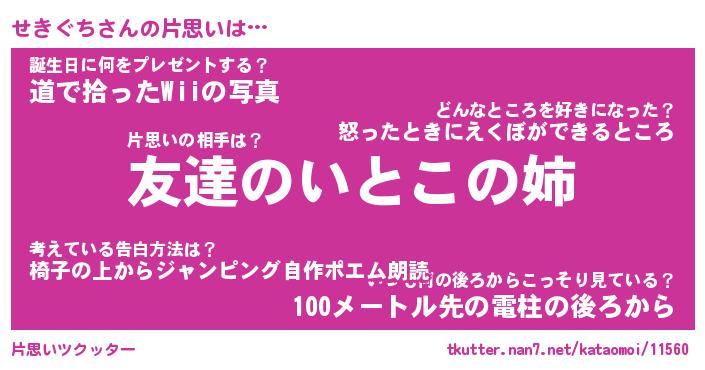| ヘコむあだ名 | 『せきもー』『つくし』『せきお』 |