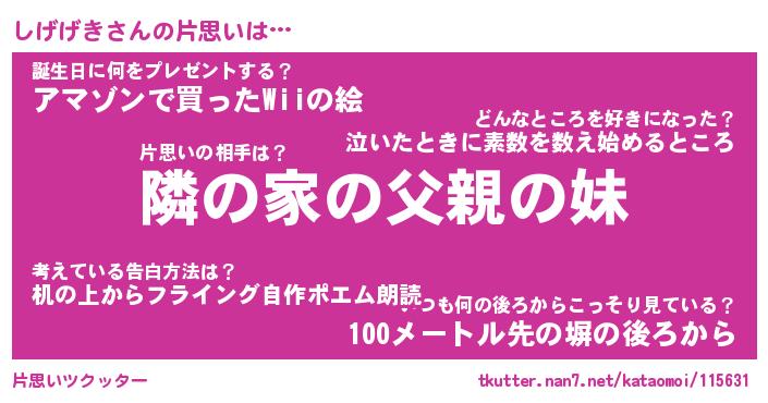 | 意味不明あだ名 | 『ペロリンしげげき』『永久保存しげげき』 |