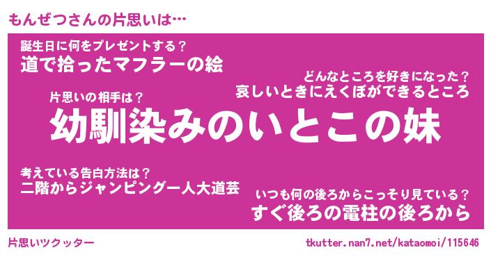 | ヘコむあだ名 | 『もんにゅー』『豆乳』『もんを』 |