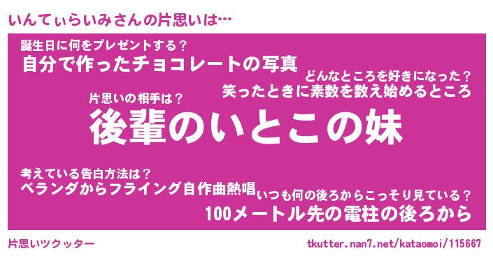 | ヘコむあだ名 | 『いんもー』『牛乳』『いんっ子』 |