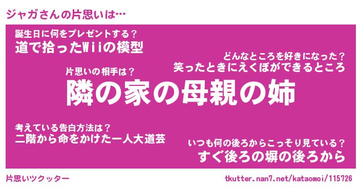 | 男性向けラノベタイトル風あだ名 | 『ジャガの憂鬱』 |