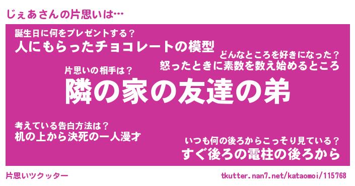 | 胡散臭い通販商品みたいなあだ名 | 『モテモテ間違いなし霊験あらたかなお札…その名も「じぇあ」』 |