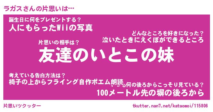 | ヘコむあだ名 | 『ラガもー』『酢こんぶ』『ラガを』 |