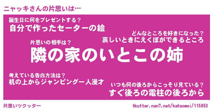 | 意味不明あだ名 | 『ペロリンニャッキ』『永久保存ニャッキ』 |