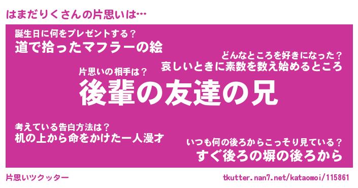 | ヘコむあだ名 | 『はまっふぃ~』『つくし』 |
