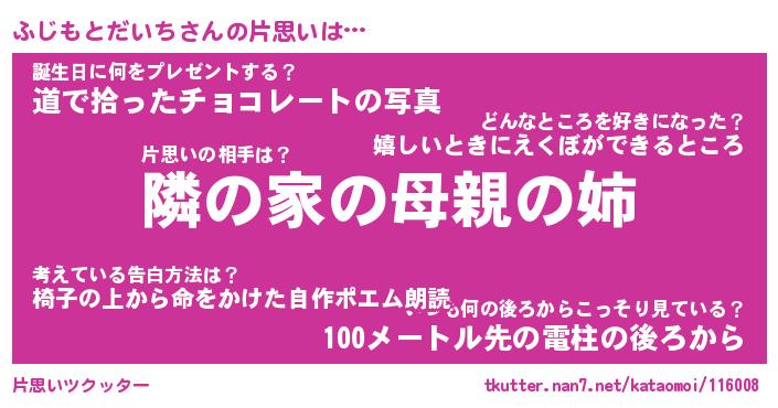 | 恥ずかしいあだ名 | 『プリティーふじもとだいち』『ふじちん』 |