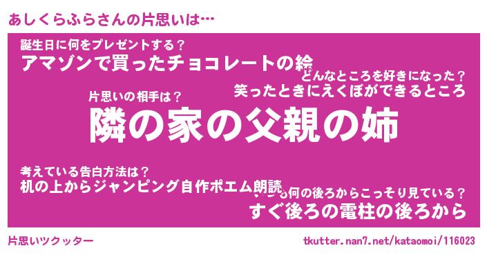 | 男性向けラノベタイトル風あだ名 | 『あしくらふらの憂鬱』 |