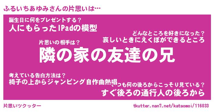 | 男性向けラノベタイトル風あだ名 | 『ふるいちあゆみの憂鬱』 |