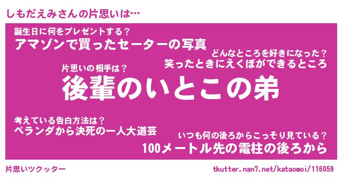 | 胡散臭い通販商品みたいなあだ名 | 『億万長者になれる水晶球…その名も「しもだえみ」』 |