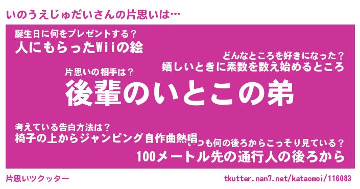 | 胡散臭い通販商品みたいなあだ名 | 『億万長者になれる水晶球…その名も「いのうえじゅだい」』 |