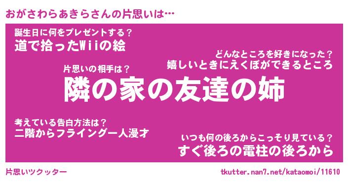 | 胡散臭い通販商品みたいなあだ名 | 『必ず成功する霊験あらたかなお札…その名も「おがさわらあきら」』 |